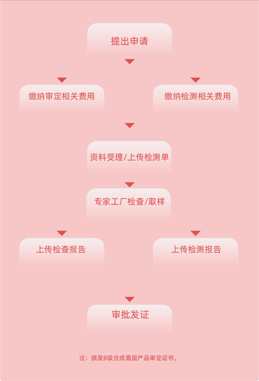首先需要(yào)登錄®φ<“中田認證管理(lǐ)系統”,選擇“面層審定”,提交申請(qǐng)表,并上(shàng)傳以下(xià)資料: