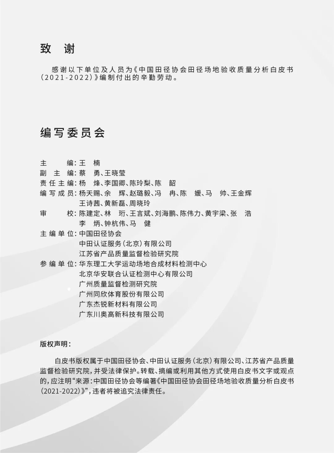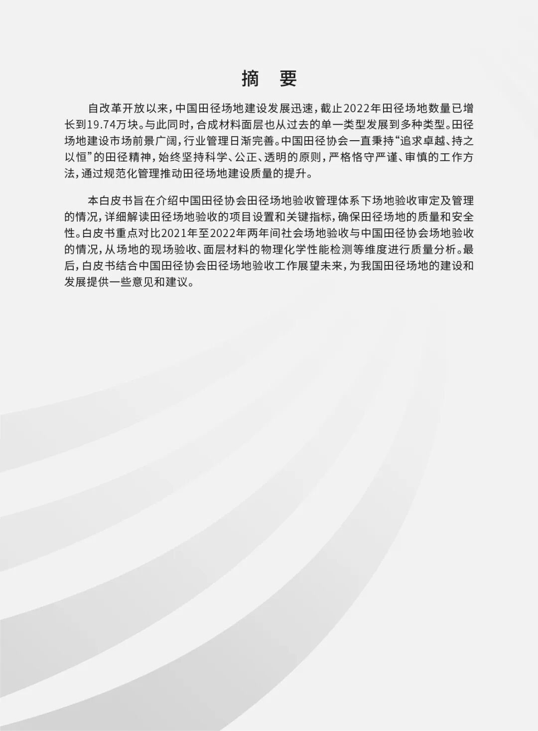 查看(kàn)《中國(guó)田徑協會(huì)田徑場(chǎ™>☆✘ng)地(dì)驗收質量分(fēn)析白(bái)皮書(shū)(20♠★21年(nián)—2022年(nián))》完整內(nèi)容