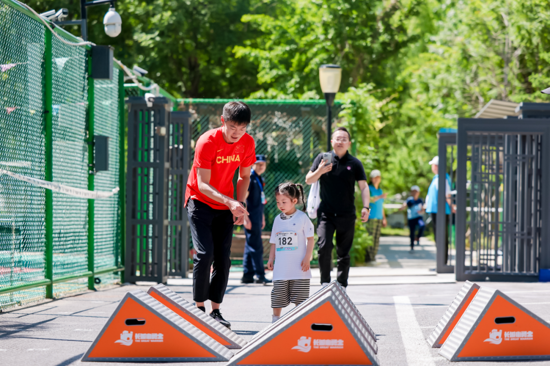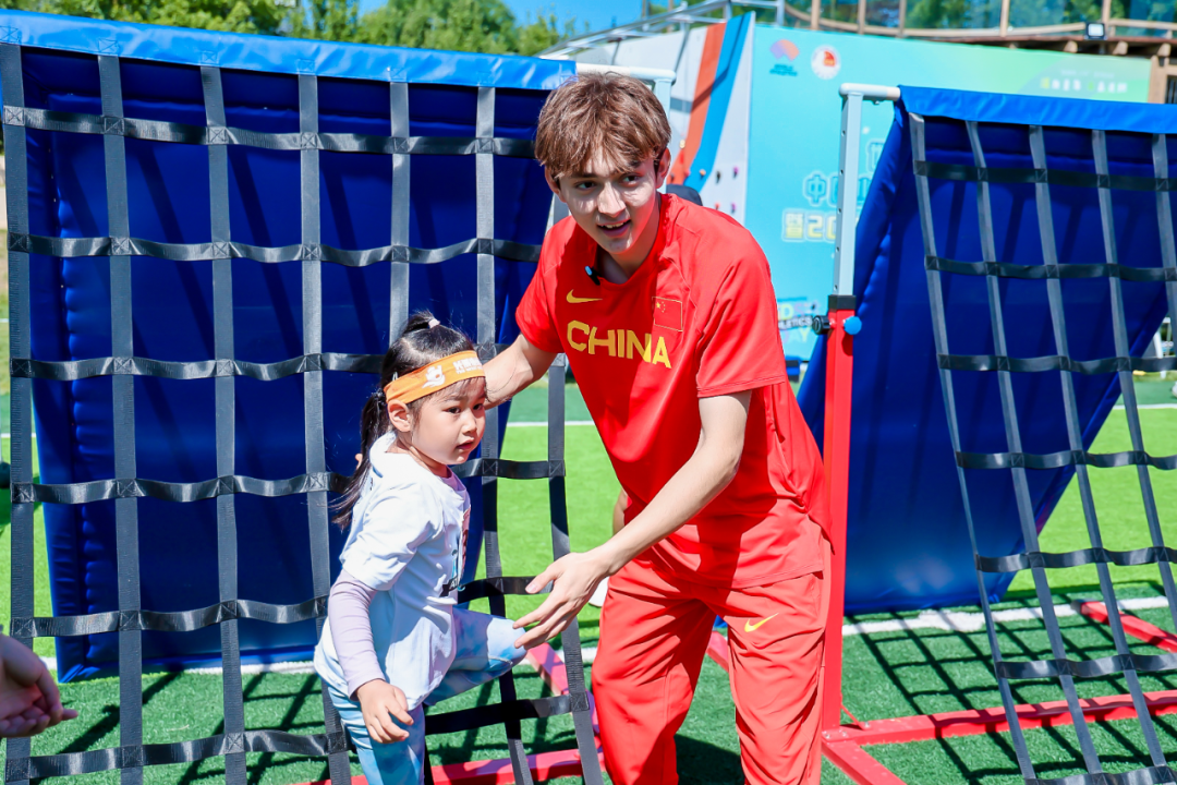 田徑明(míng)星運動員(yuán)和(hé)小(xi>< ǎo)朋(péng)友(yǒu)一(yī)起穿越長(cháng)城(chén★® g)小(xiǎo)勇士關卡