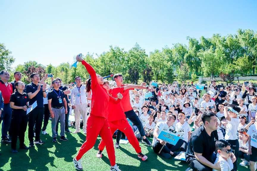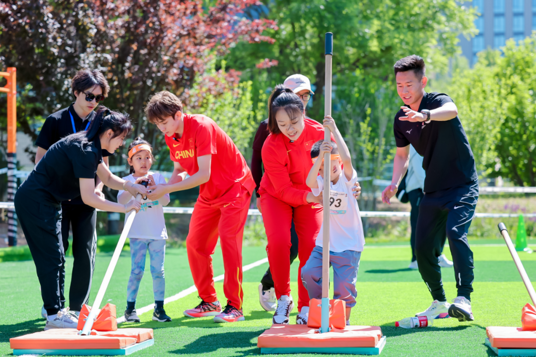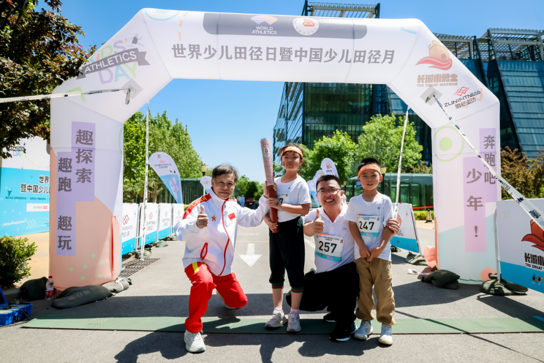 田徑明(míng)星運動員(yuán)投擲世≤界少(shǎo)兒(ér)田徑标槍點燃“長(cháng)城(ché∞✘ng)小(xiǎo)勇士烽火(huǒ)”