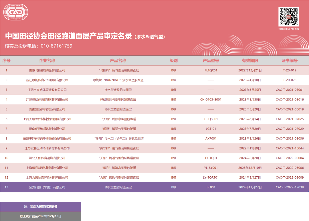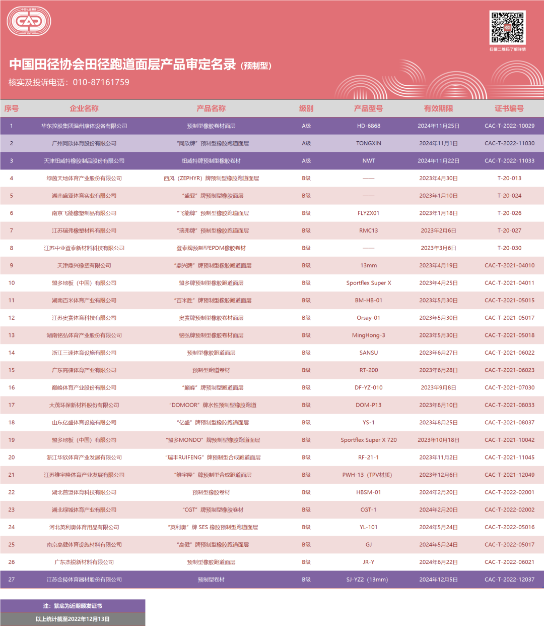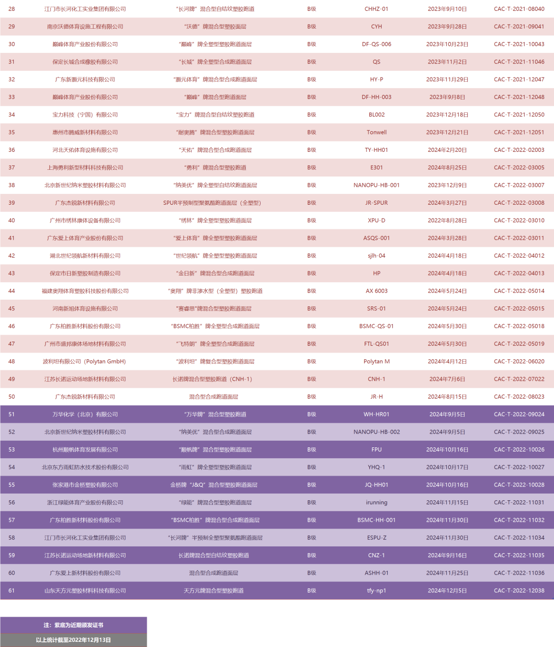 注:紫底部分(fēn)為(wèi)近(jìn)期頒發證書(¥ shū)