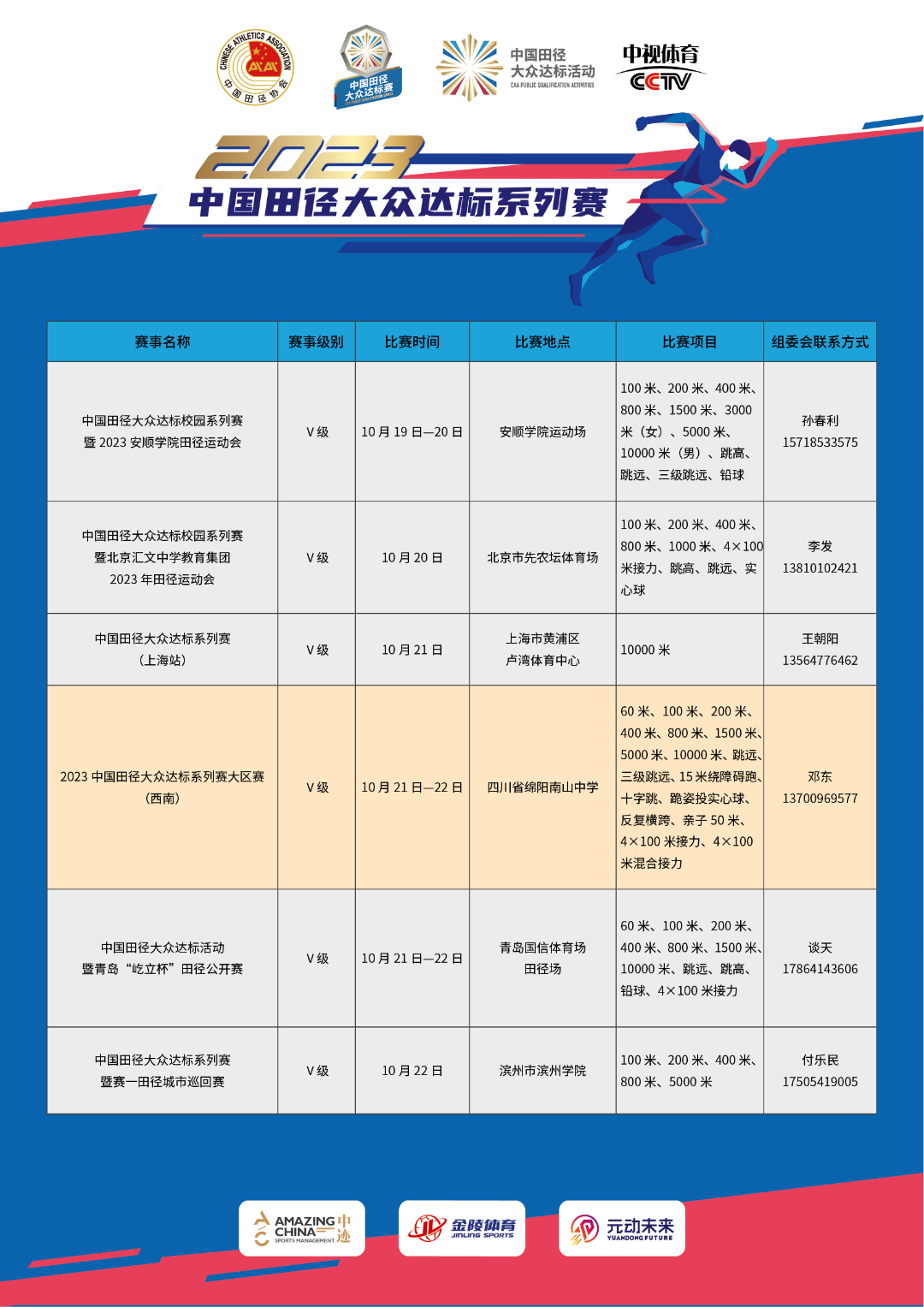 2023中國(guó)田徑大(dà)衆達标系列賽大(dà)區(qū)♠♦±賽、總決賽競賽規程已正式發布。華東(dōng)大(dà)區(qū)賽即将于Ω¥"☆11月(yuè)4日(rì)杭州開(kāi)啓,敬請(qǐng)關注——☆™♣₽