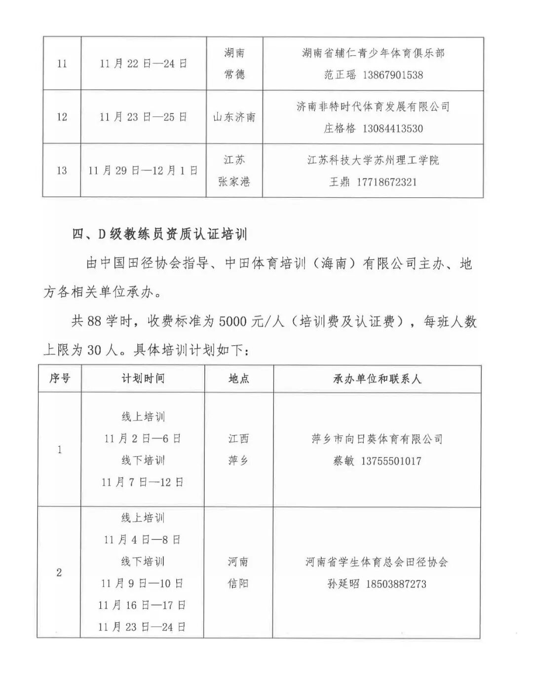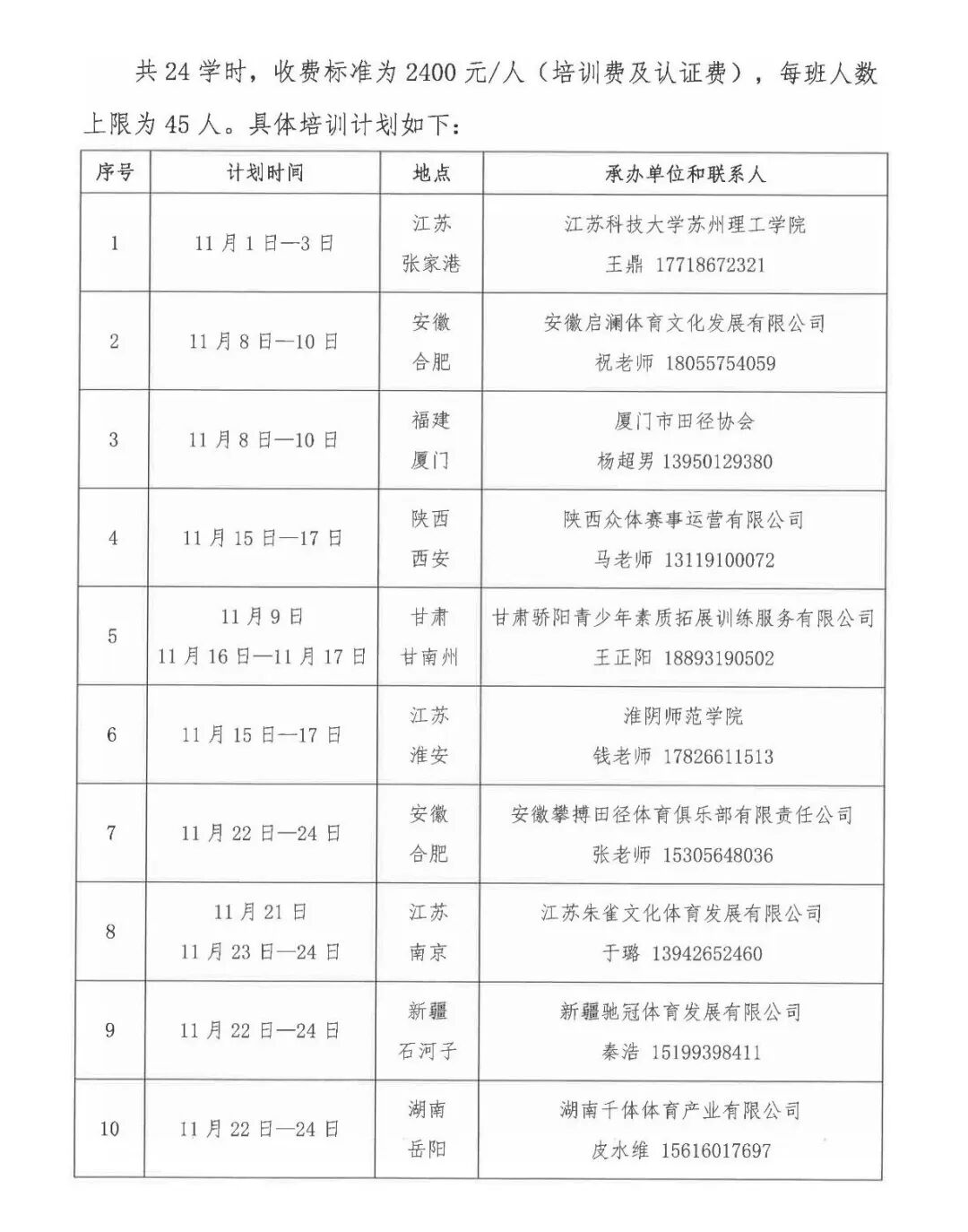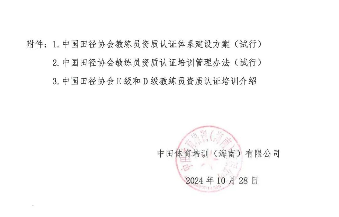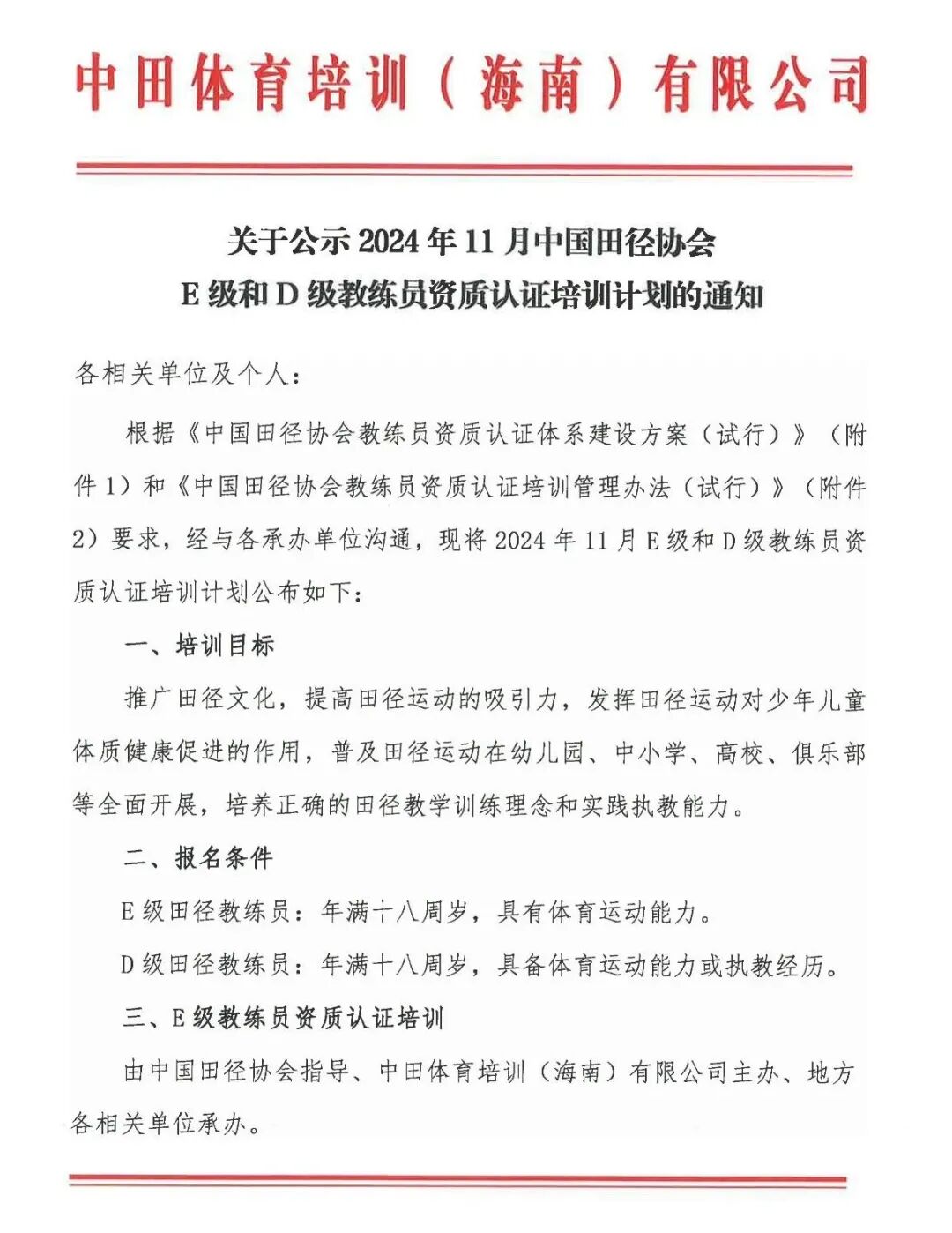 關于公示2024年(nián)11月(y¶∑¶$uè)中國(guó)田徑協會(huì)E級和(h♥©¶é)D級教練員(yuán)資質認證培訓計(jì)劃的(de)π¥通(tōng)知(zhī)