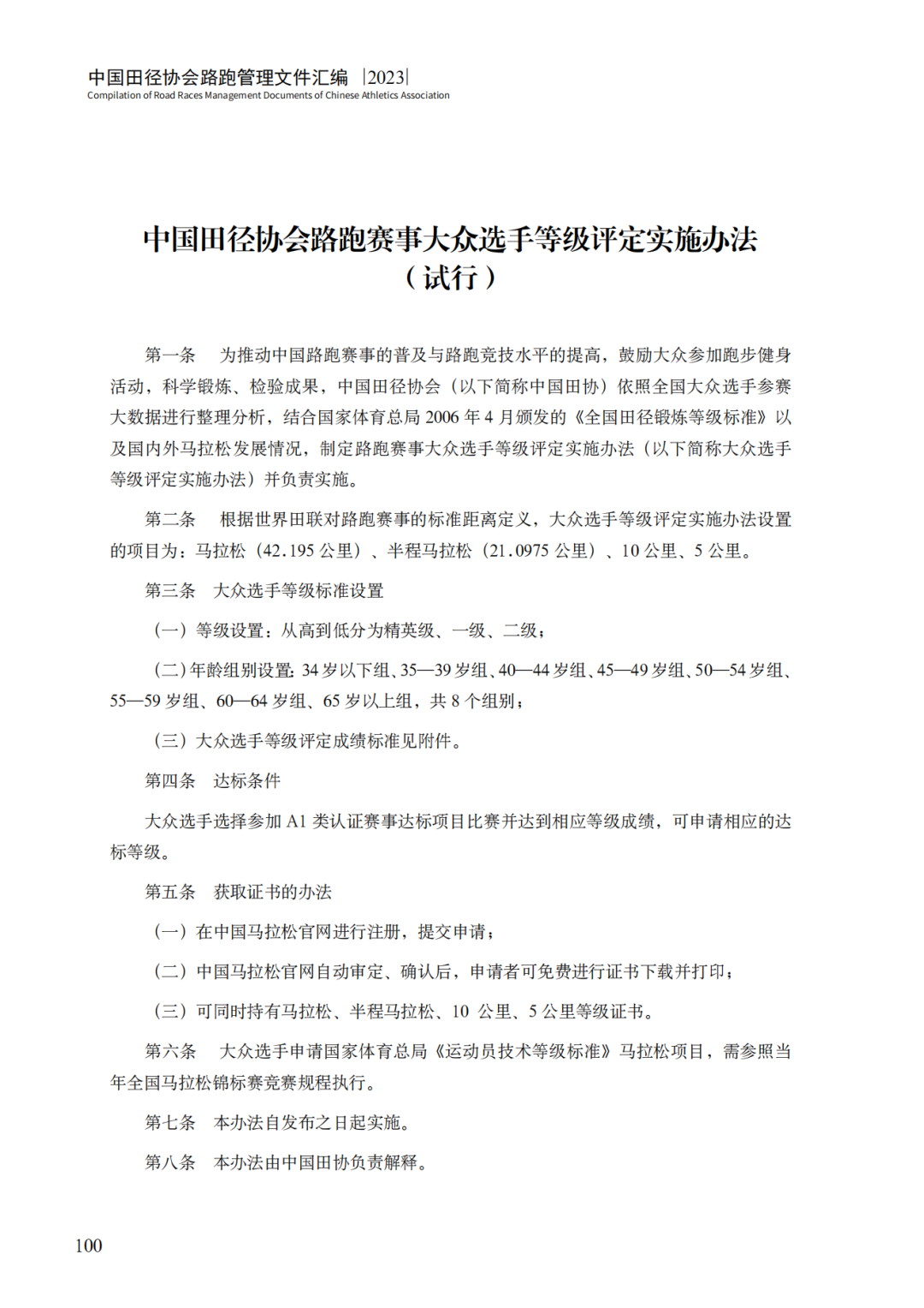 根據《中國(guó)田徑協會(huì)路(πΩlù)跑賽事(shì)大(dà)衆選手等級評定實施≥'辦法 (試行(xíng))》第七條,本辦≤₩↑法自(zì)發布之日(rì)起實施。