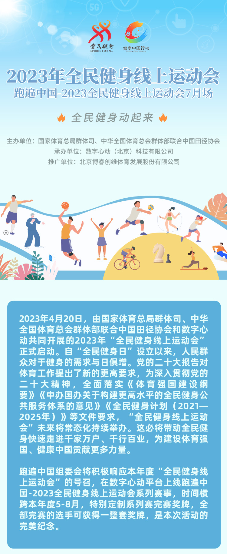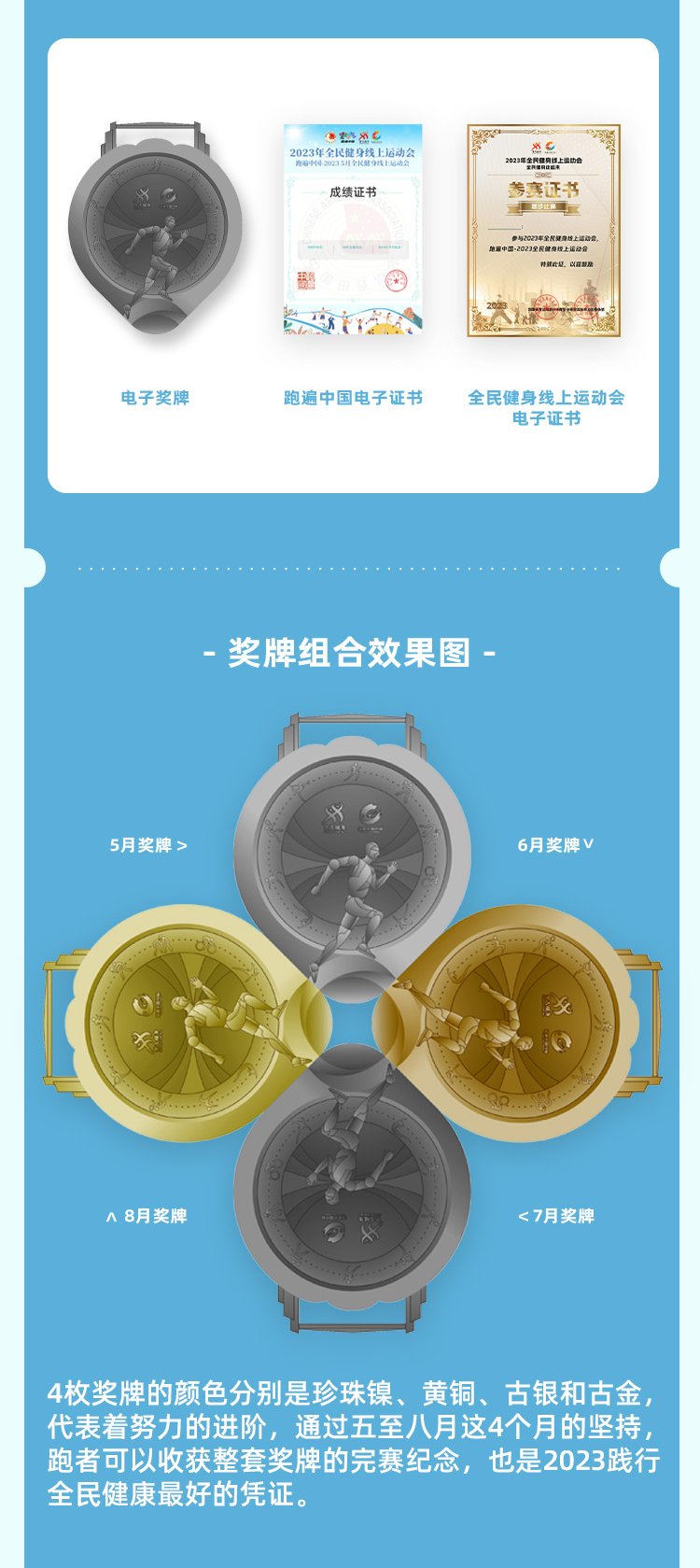 “跑遍中國(guó)- 2023全民(mín)健身(sβ•∞®hēn)線上(shàng)運動會(huì)”系列賽已于7月 λ★(yuè)7日(rì)開(kāi)啓新一(yī)月(yuè)的(de)賽事≥©(shì),跑友(yǒu)們掃描下(xià)方<二維碼即可(kě)報(bào)名參與賽事(shì₹ε£"),還(hái)可(kě)付費(fèi)獲得(de)∑<本月(yuè)專屬紀念獎牌,以及全民(mín)健身(shēn)線上(shàng®↓φ)運動會(huì)專屬電(diàn)子(zǐ)證書(shū)。✔ ₽