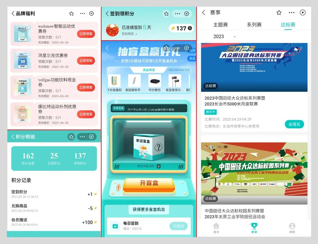 在“首頁”或“我的(de)”菜單內(nèi)可(kě¶←§)以免費(fèi)領卡。一(yī)鍵授權注冊成功後,免費↑φ≠ (fèi)贈送100積分(fēn),并可(kě)以兌換或領±λδ取品牌優惠券,參加抽盲盒、走路(lù)線、集勳章(zhβ♠β āng)等活動,浏覽更多(duō)賽事(shì) ↕資訊信息等。