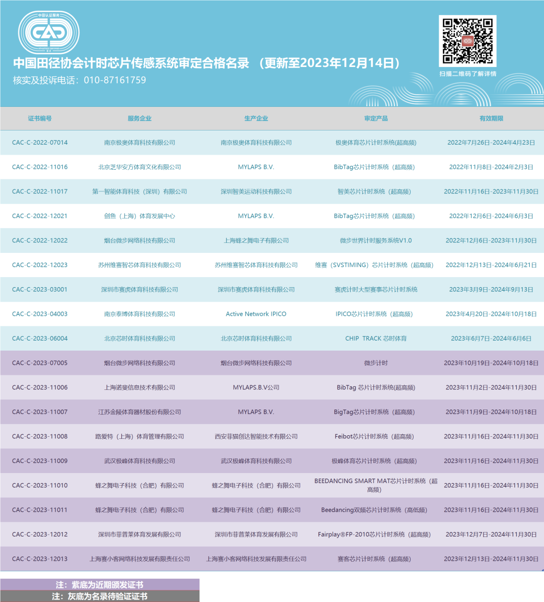 注:紫色底部分(fēn)為(wèi)近(jìn)期頒發證書(shū♥↔)