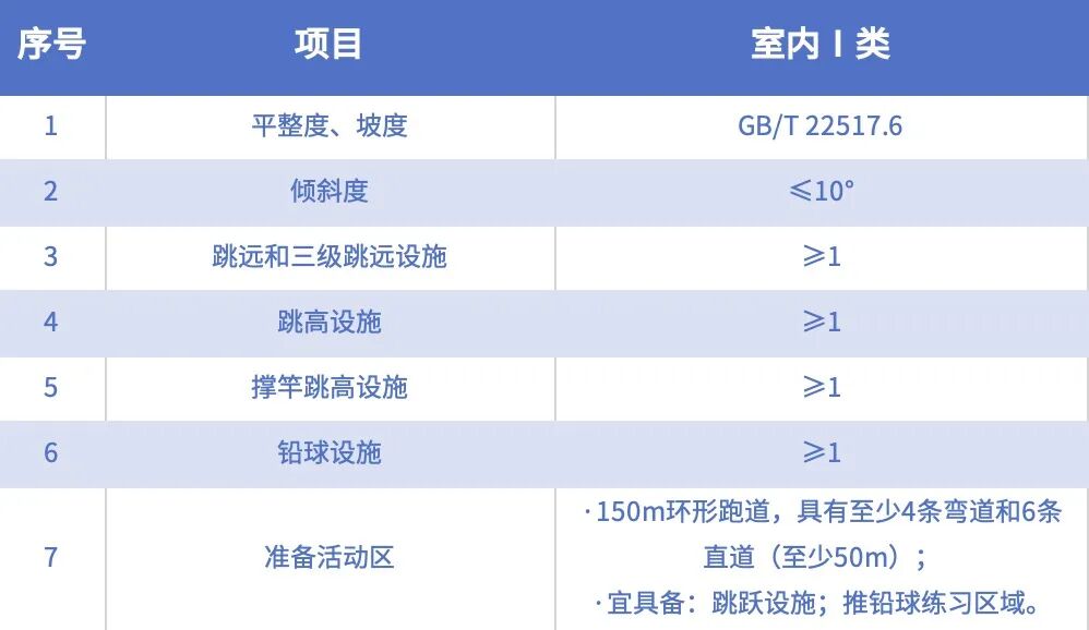 各項運動設施符合《田徑競賽與技(jì)術(shù)規則》中的(de)規€≠定,并應通(tōng)過中國(guó)田協的(deδ↕)審定。