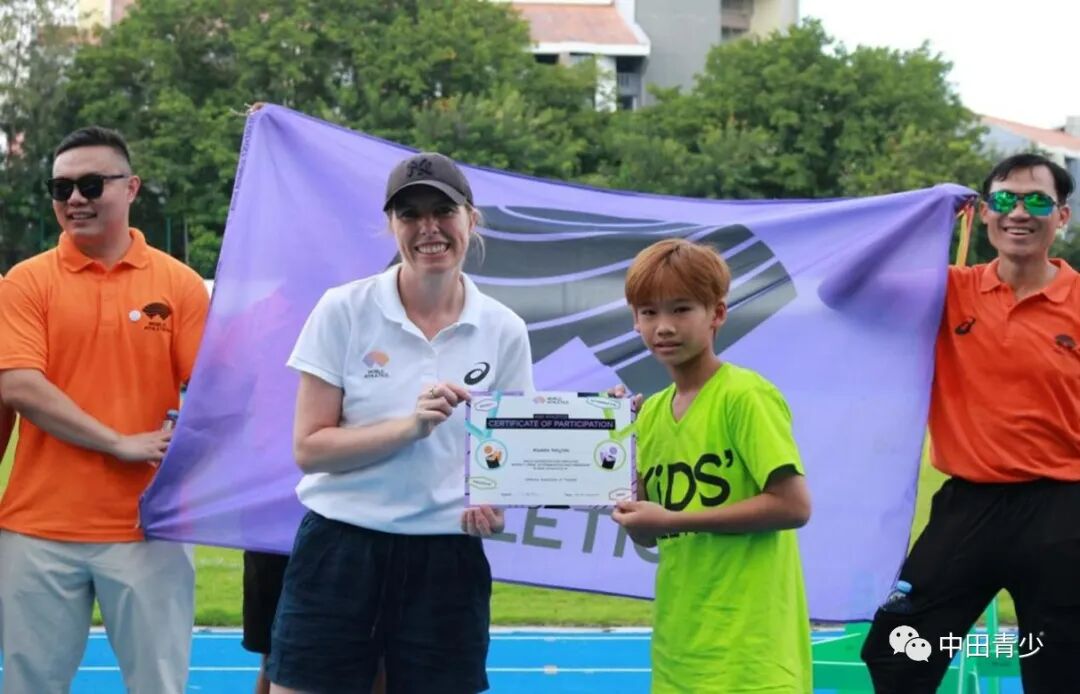 中國(guó)參會(huì)人(rén)員(yuán)與凱瑟琳(catheriπ§ne O'sullivan)運動場(chǎng)合影(yǐng)