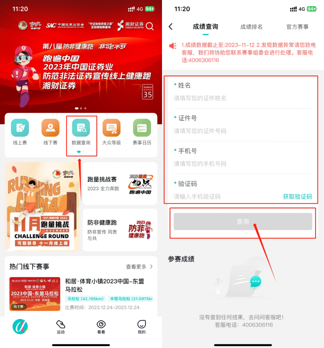 點擊“查詢”後,頁面底部将出現(xiàn)個(gè)人(rén) ↔<姓名及證件(jiàn)号信息,點擊“查詢參賽記錄”即可(kě)查看(♥ ✔kàn)到(dào)過往參與的(de)所 ≥有(yǒu)馬拉松比賽成績。