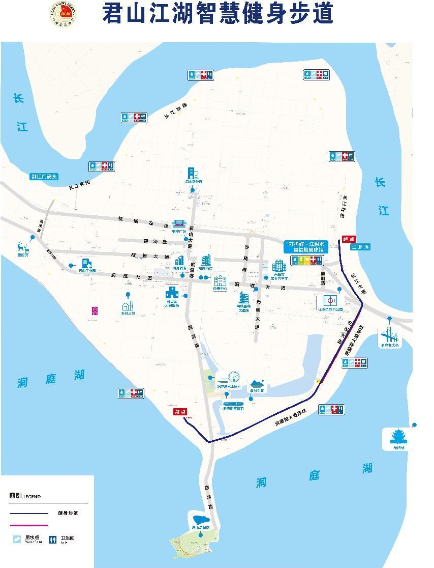 君山(shān)江湖(hú)智慧健身(shπ≤ēn)步道(dào)是(shì)湖(hú)南(ná™₽n)省首條五星級智慧型健身(shēn)步道(dào),也(yě)是(s≠ hì)嶽陽市(shì)君山(shān)區(qū)通(tōng♠&≈')過中國(guó)田協審定的(de)第二條五星級健身(shēn)步道(d♥¶ào)。該條步道(dào)北(běi)依長(cháng)江,南™ (nán)瀕洞庭,位于君山(shān)區(qū)中心城(chéng)區≈(qū)的(de)東(dōng)南(nán)面,起點坐(zuò✘≈✘¥)落于“守護好(hǎo)一(yī)江碧水(shuǐ£≥®)”首倡地(dì)展陳館,終點位于旅遊路(lù)西(xī)。÷®₩ 整個(gè)步道(dào)由嶽陽市(shì)君山(shān)區(qū)城(c♦×'↕héng)市(shì)建設投資有(yǒu)限公司投資建設,湖(hú)★×∑₩南(nán)省第二工(gōng)程有(yǒ<★≤u)限公司負責施工(gōng),嶽陽市(shì)君山(shā"♠n)區(qū)文(wén)化(huà)旅遊廣電(diàn)體(♦α✘tǐ)育局和(hé)嶽陽青蘿旅遊投資有(yǒu)限責任公司™™β負責運營。