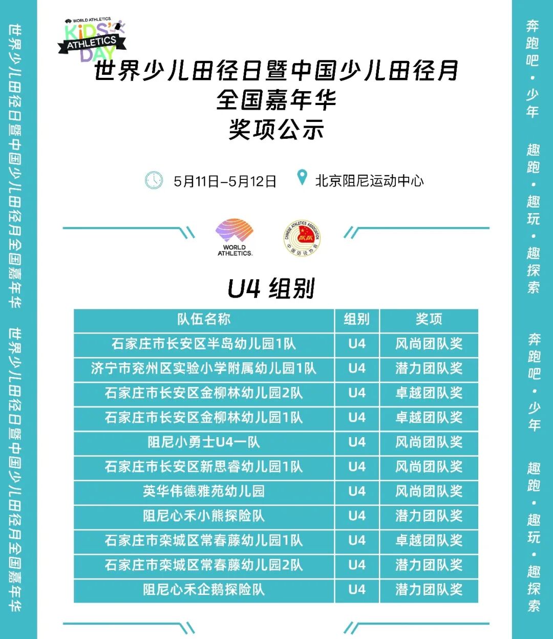 2024世界少(s✔♥hǎo)兒(ér)田徑日(rì)暨中國(guó)少(shǎo)兒(éπ£®r)田徑月(yuè)全國(guó)嘉年(nián)華于5月(yuè)11日© ★(rì)至5月(yuè)12日(rì)在北(běi)京成功舉辦,現(xiàn)π将團隊獎項予以公示。詳情如(rú)下(xià):