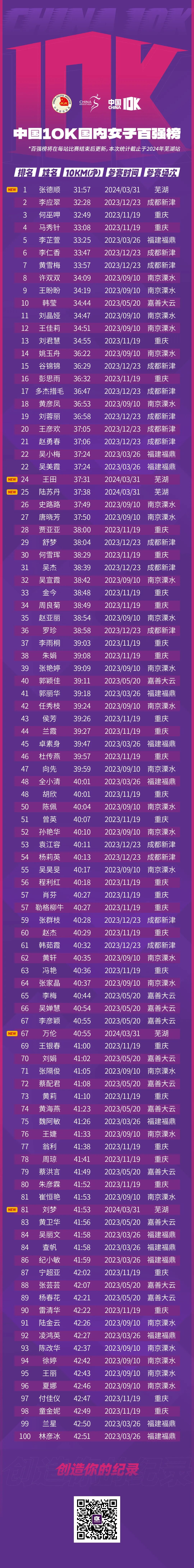 張德順31分(fēn)57秒(miǎo)穩居第一(yī)!中國( Ωguó)10K國(guó)內(nèi)女(nǚ)子(zǐ)百強榜更新