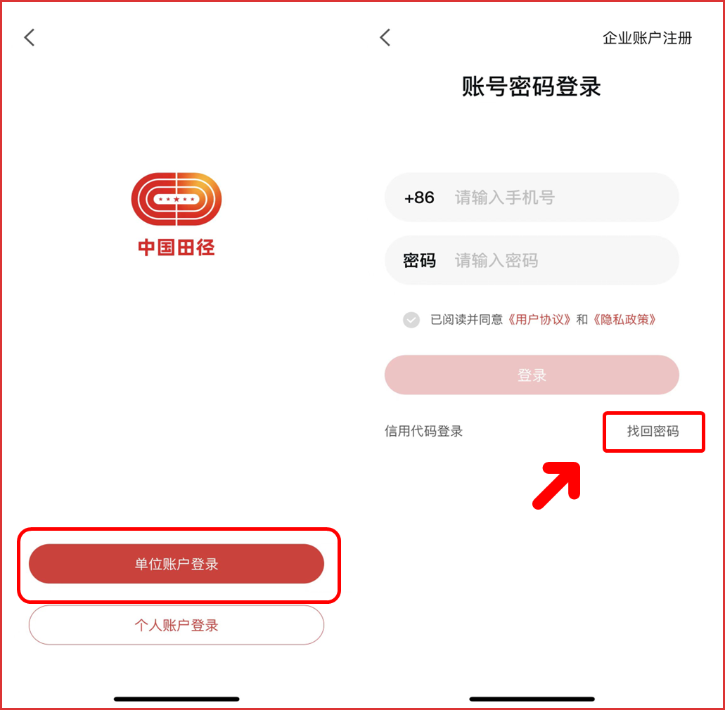 1、登錄:打開(kāi)中國(guó)田徑APP,點擊“λ©♥®我的(de)”,點擊“單位賬戶登錄”。