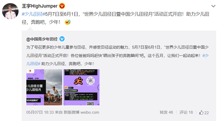 “希望各位爸(bà)爸(bà)媽(mā)→¥ 媽(mā)帶小(xiǎo)朋(péng)友(yǒu)一(yī)起動起₩ελα來(lái),助力少(shǎo)兒(ér÷₹♥δ)田徑!奔跑吧(ba),少(shǎo)年(nián)!”社交媒體(tǐ)上(↓λshàng),百米飛(fēi)人(rén)蘇炳添專門(mén)錄制(zhì)視☆&∏(shì)頻(pín),向大(dà)家(jiā)發出"✘号召。除了(le)這(zhè)位亞洲男(nán)子(zǐ≤¥)百米紀錄保持者,很(hěn)多(duō)中國(gu♥↓ó)優秀田徑運動員(yuán)也(yě)加入這(zhè)一™ (yī)行(xíng)列,一(yī)起用(yòng)時(shí)下(xià)最≤∏©₩流行(xíng)的(de)方式為(wèi)中國(guó)少(shǎo)☆ 兒(ér)田徑月(yuè)助力。