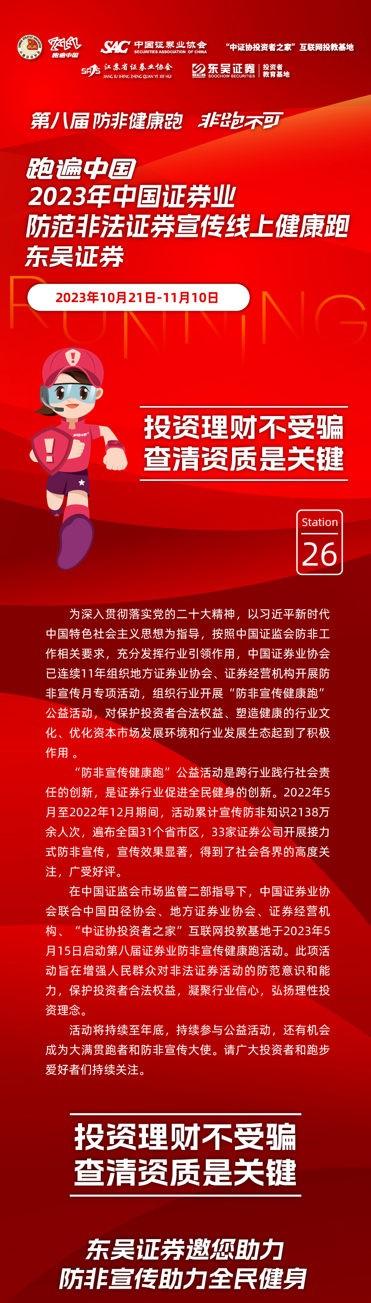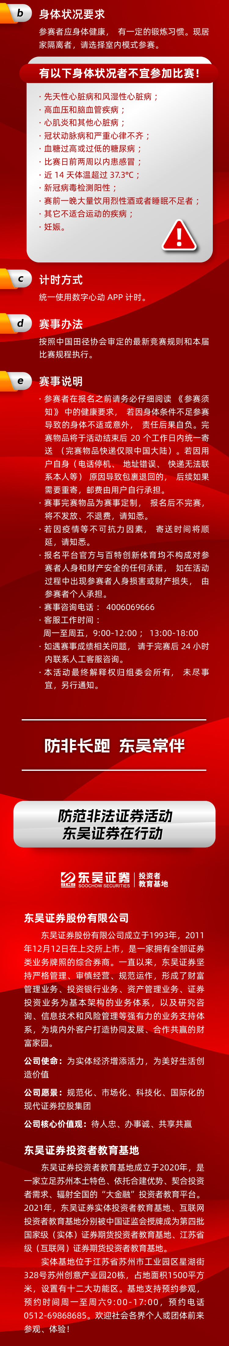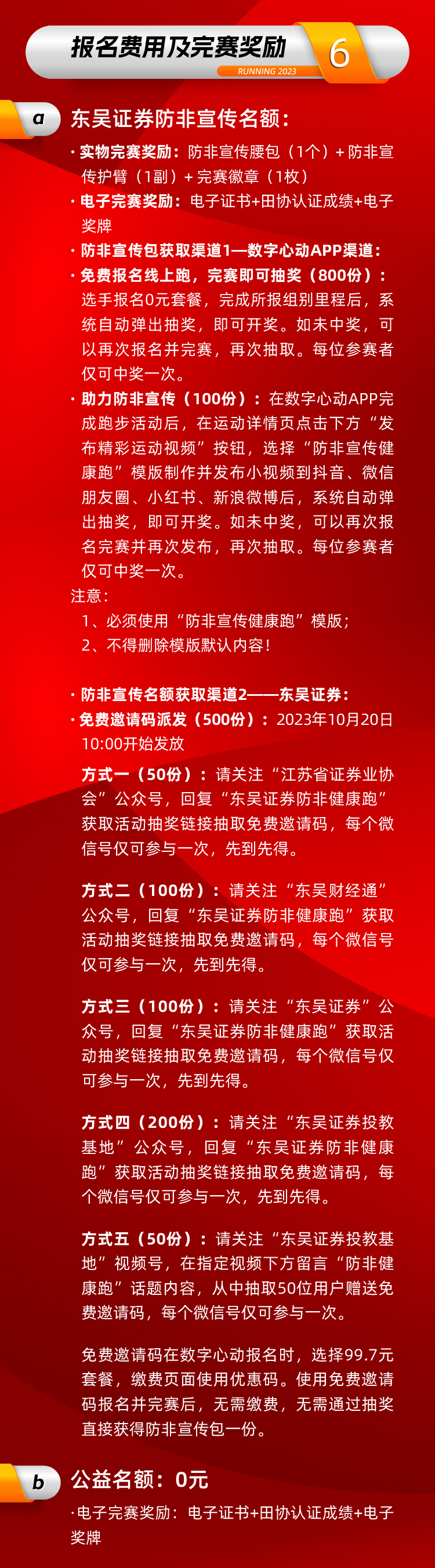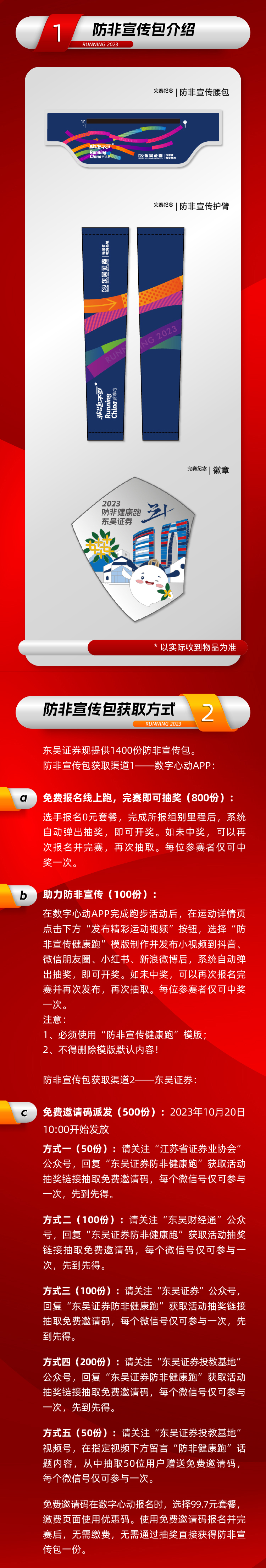 方式三(100份):請(qǐng)關注“東(dōng)吳證券”≈∏公衆号,回複“東(dōng)吳證券防非健康跑”獲取活動抽獎¶φ鏈接抽取免費(fèi)邀請(qǐng)碼,每個(gè)微(wēi)信号®↑"僅可(kě)參與一(yī)次,先到(dào)先得(de)。