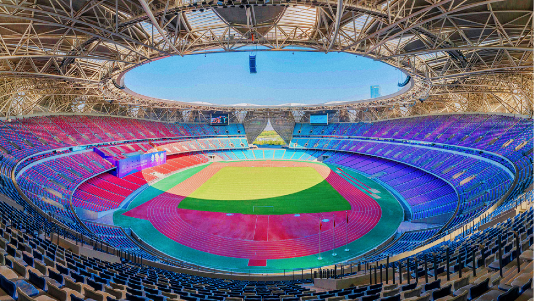 2024年(nián)巴黎奧運會(huì)突破傳統紅®γΩ(hóng)色跑道(dào),選用(yòng)紫色作(zuò)為(wèi)主÷÷色調。紫色由紅(hóng)、藍(lán)混合而成,兼具激發潛能(nλ₩♦éng)(紅(hóng)色)與提升專注力(藍(lán) ε色)的(de)心理(lǐ)效應。研究表明(míng),©•紫色跑道(dào)在電(diàn)視(shì)轉播中與觀衆席形 ♥♠成高(gāo)對(duì)比度,使運動員(δ$"yuán)形象更突出,同時(shí)呼應法國(guó)薰衣草(cǎ¶✘"o)田的(de)文(wén)化(huà)象征。&nb☆☆sp;