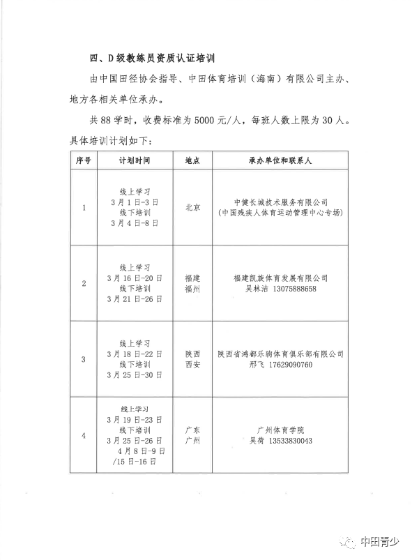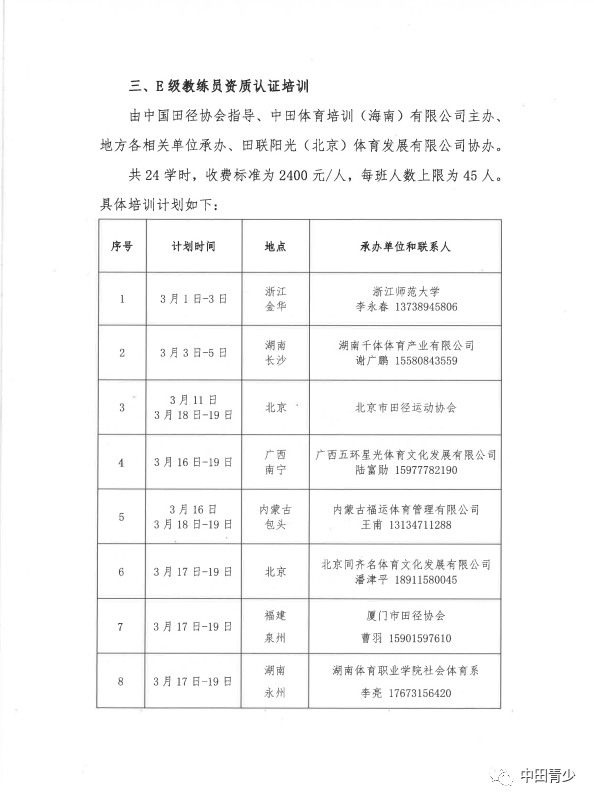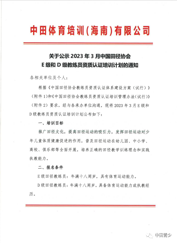 關于公示2023年(nián)3月(yuè) ≤中國(guó)田徑協會(huì)E級和(hé)D級教練員(yuán)資質認證培↓₽訓計(jì)劃的(de)通(tōng)知(zhī)