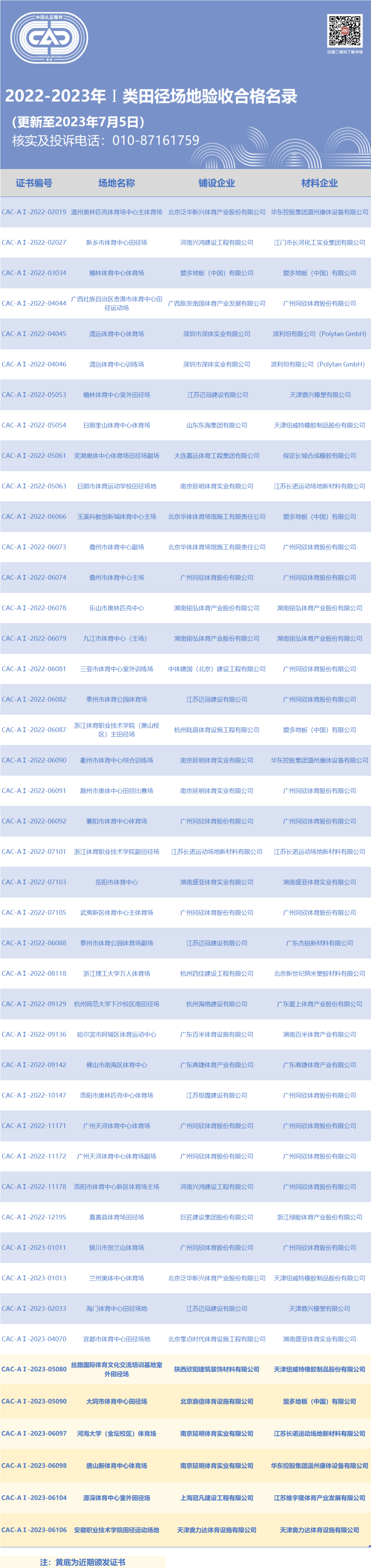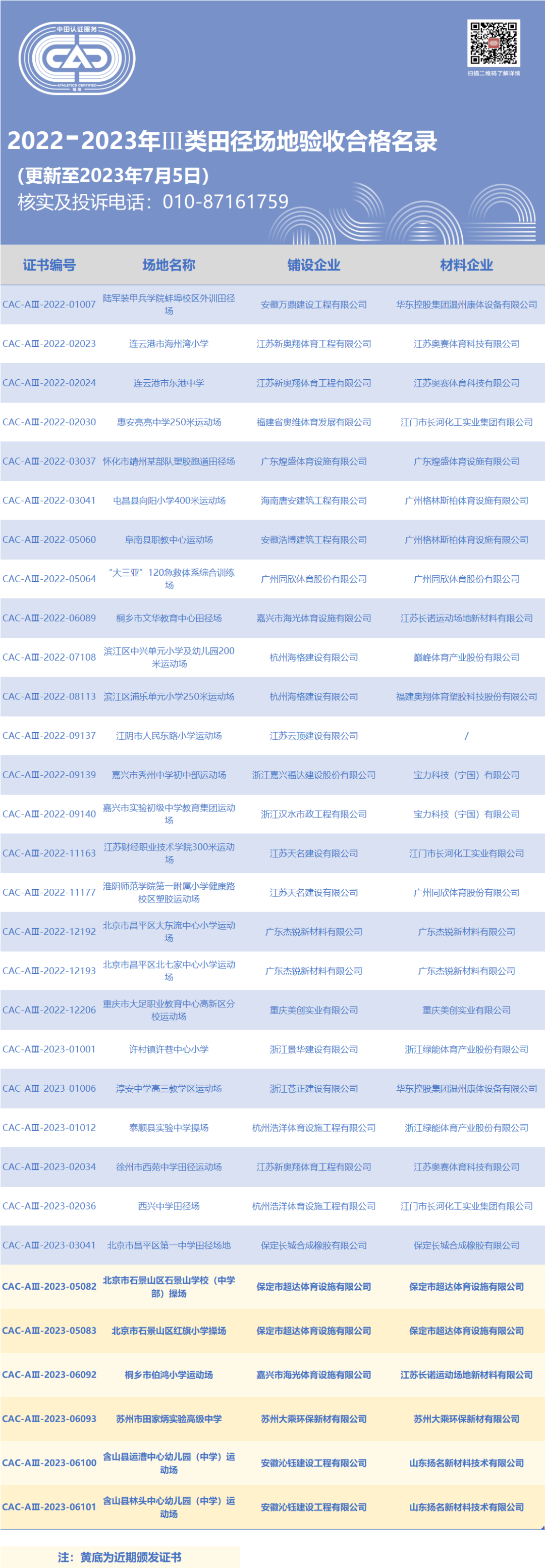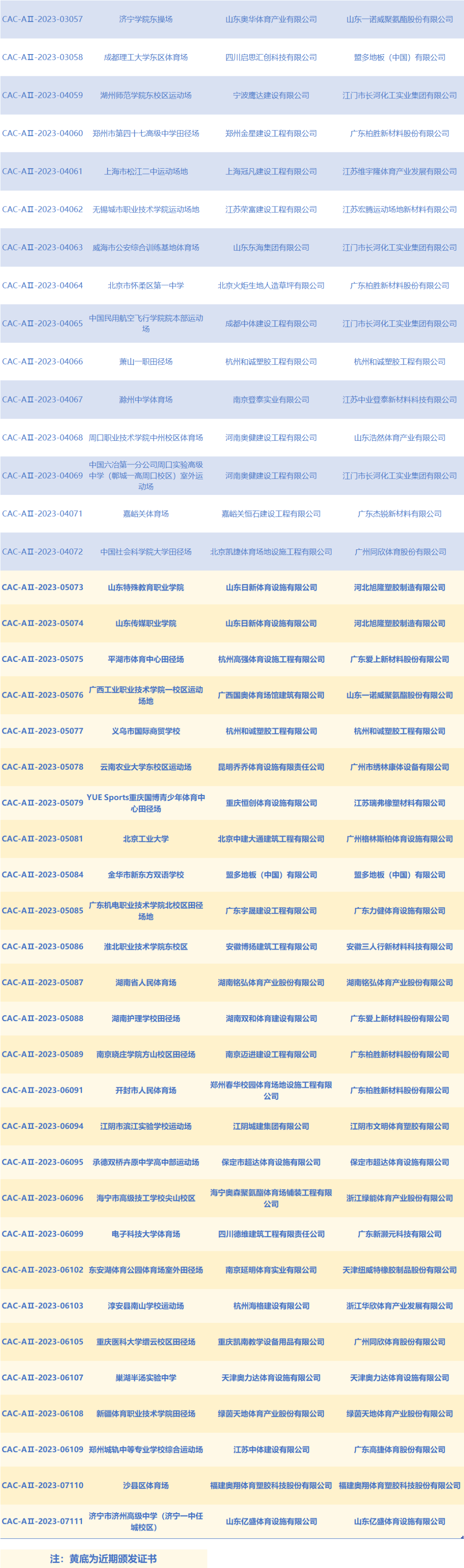 注:黃(huáng)底部分(fēn)為(wèi)近(jìn)期£ ¶¶頒發證書(shū)